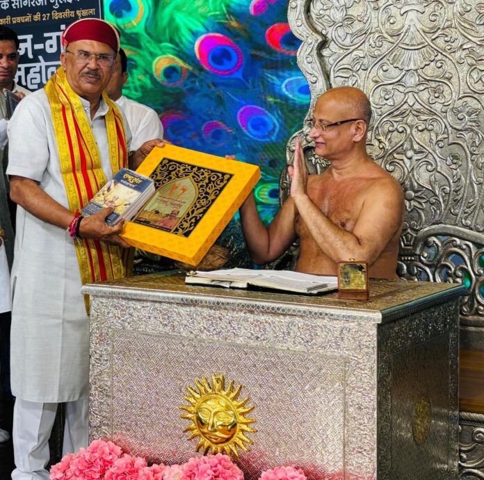 जयपुर। राजस्थान विधानसभा अध्यक्ष वासुदेव देवनानी ने शुक्रवार को उदयपुर प्रवास के दौरान चातुर्मास समिति-2025 द्वारा आयोजित ज्ञान-गंगा महोत्सव में भाग लिया। उन्होंने 27 दिवसीय प्रवचन श्रृंखला के अंतर्गत संत आचार्य श्री पुलक सागर जी महाराज के दर्शन कर आशीर्वाद प्राप्त किया।