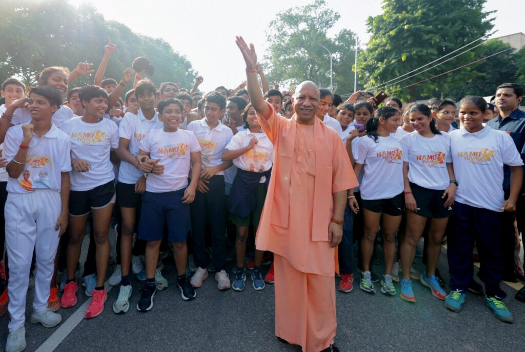 प्रधानमंत्री मोदी के जन्मदिन के अवसर पर मनाए जा रहे सेवा पखवाड़ा के तहत’नमो मैराथन’ कार्यक्रम में युवाओं के साथ  मुख्यमंत्री योगी आदित्यनाथ।
