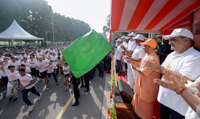 सीएम योगी ने 5 कालीदास मार्ग से नमो मैराथन को हरी झंडी दिखाकर रवाना किया