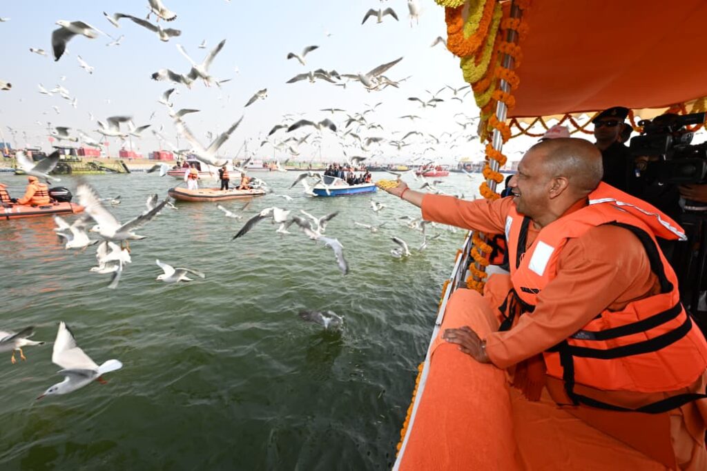 मुख्यमंत्री योगी आदित्यनाथ माघ मेले में पहुंचे। वह वीआईपी घाट से बोट में बैठकर संगम नोज पहुंचे। उन्होंने बोट से ही यमुना नदी में कलरव कर रहे पक्षियों को दाना भी खिलाया। मुख्यमंत्री ने संगम नोज पर पहुंचकर माघ मास में पवित्र स्नान किया, फिर विधिवत पूजन-अर्चन कर मां गंगा की आरती उतारी। उन्होंने मां गंगा के चरणों में शीश झुकाकर माघ मेले की सफलता की कामना की। सीएम बोट में ही बैठकर निरीक्षण करते हुए वापस आए। इस दौरान मुख्यमंत्री ने आमजन का अभिवादन भी किया।