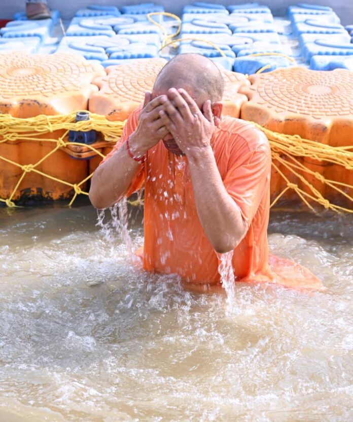 प्रयागराज। मुख्यमंत्री योगी आदित्यनाथ शनिवार को प्रयागराज दौरे पर रहे। यहां उन्होंने विभिन्न आध्यात्मिक कार्यक्रमों में हिस्सा लिया। मुख्यमंत्री ने ‘संगम स्नान’ किया। त्रिवेणी संगम का पूजन-अर्चन किया व मां गंगा की आरती उतारी। मुख्यमंत्री ने बड़े हनुमान मंदिर पहुंचकर ‘संकट मोचक’ के चरणों में शीश झुकाया। मुख्यमंत्री ने आमजन का अभिवादन भी स्वीकार किया।
