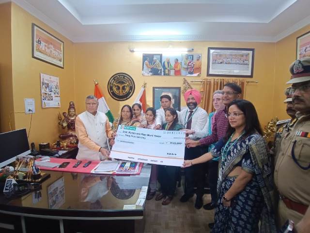 लखनऊ। उत्तर प्रदेश के कारागार एवं होमगार्ड्स राज्य मंत्री (स्वतंत्र प्रभार) धर्मवीर प्रजापति ने आज अपने सरकारी आवास 10 ए कालिदास पर मृतक होमगार्ड राम मूर्ति यादव की आश्रित पत्नी कमला को 35 लाख रुपए का दुर्घटना बीमा चेक प्रदान किया।