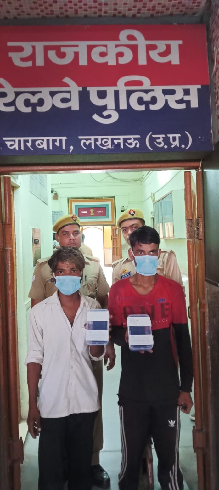 जो यात्रिओं का सामान और मोबाइल चुरा कर भाग जाते थे। जिनकी पहचान विष्णु निवासी नब्बीखेडा थाना गोसाईगंज समेत जाबिर अली निवासी पीर शाह बाबा की मजार के पीछे, रामनगर थाना रामनगर जनपद बाराबंकी के रूप में हुई।
