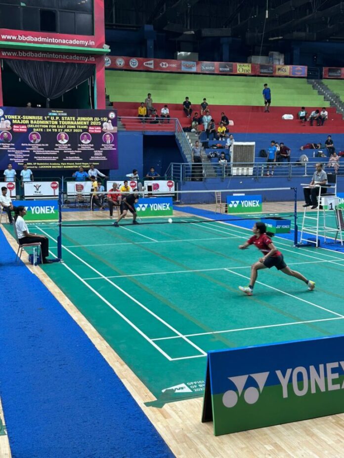 लखनऊ। बीबीडी यूपी बैडमिंटन अकादमी में खेली जा रही योनेक्स-सनराइज यूपी राज्य जूनियर मेजर बैडमिंटन प्रतियोगिता में शनिवार को गोरखपुर के हुसैन अंसारी और स्पोर्ट्स कॉलेज के कपिल सलोनिया ने शानदार जीत के साथ बालक एकल के फाइनल में अपनी जगह पक्की कर ली है।