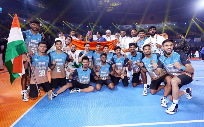 नई दिल्ली। टीम इंडिया ने रविवार की रात इंदिरा गांधी इंडोर स्टेडियम में उद्घाटन खो खो विश्व कप 2025 का खिताब जीतकर इस खेल के इतिहास में अपना नाम दर्ज करा लिया। कप्तान प्रतीक वाइकर और टूर्नामेंट के स्टार खिलाड़ी रामजी कश्यप के शानदार प्रदर्शन की बदौलत भारतीय पुरुष टीम ने नेपाल के खिलाफ फाइनल में 54-36 से जीत दर्ज की।इससे पहले भारत की महिला टीम ने एक और बेहतरीन फाइनल में नेपाल पर दबदबा बनाते हुए 78-40 के शानदार स्कोर के साथ अपनी जीत पक्की की और चैंपियन का ताज पहना।