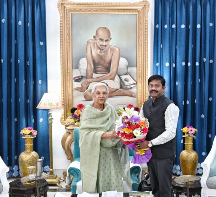 लखनऊ। उत्तर प्रदेश की संवैधानिक प्रमुख, महिला सशक्तिकरण की प्रतीक राज्यपाल आनंदीबेन पटेल से भेंट कर औद्योगिक विकास मंत्री नन्द गोपाल गुप्ता नन्दी ने राजभवन में उन्हें स्नेह, सौहार्द, उल्लास और रंगों के पावन पर्व होली की हार्दिक बधाई एवं शुभकामनाएं दी। विभिन्न विषयों पर मार्गदर्शन के साथ ही राज्यपाल का आशीर्वाद एवं स्नेहिल शुभकामना प्राप्त किया।