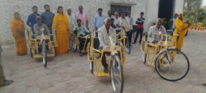 लखनऊ। गुरुवार को माल क्षेत्र के घटघटा बाबा के पावन प्रांगण में सामाजिक न्याय और अधिकारिता मंत्रालय दिव्यांगजन सशक्तिकरण विभाग की एडिप योजना के अंतर्गत माल प्रधान संघ अध्यक्ष संयोगिता सिंह चौहान के नेतृत्व एवं युग दृष्टि द्वारा संचालित नि:शुल्क बहुउद्देशीय दिव्यांगजन समग्र पुनर्वास कार्यक्रम के अन्तर्गत 1000 साड़ी, 200 चस्मे, 100 कमर के पट्टे, 100 घुटनें के मोजे, 150 बैशाखी, 10 वॉकर, 80 व्हील चेयर, 310 ट्राईसाइकल वितरण किया गया।