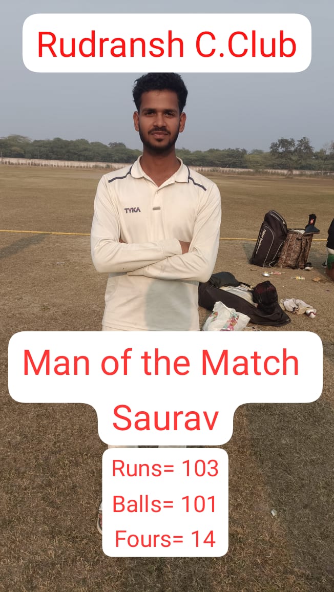 लखनऊ। मैन आफ द मैच सौरव (103 रन, 101 गेंद, 14 चौके) की शानदार शतकीय पारी की बदौलत 21वीं बीबीडी सी डिवीजन क्रिकेट लीग में रूद्रांश क्रिकेट क्लब ने गुजराल क्रिकेट क्लब को 135 रनों से करारी शिकस्त दी।