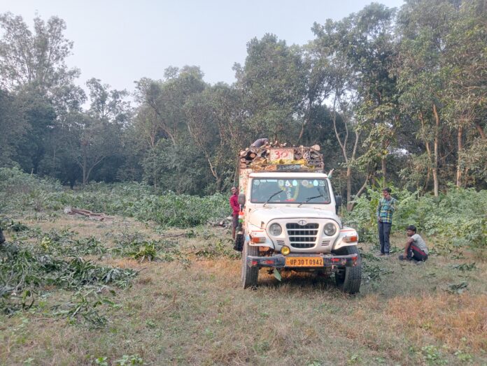 लखनऊ। वन विभाग व लोकल पुलिस की मिली भगत के चलते लकड़ी माफिया खुलेआम हरियाली पर आरा चलावा रहे है। जिम्मेदार लोग जान कर भी अनजान बने हुये है।