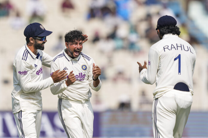 कोलकाता। भारत और दक्षिण अफ्रीका के बीच चल रहे टेस्ट मैच में भारतीय गेंदबाजों का दबदबा जारी है। स्पिनर कुलदीप यादव ने शानदार प्रदर्शन करते हुए दक्षिण अफ्रीका को चौथा झटका 114 के स्कोर पर दिया। वियान मुल्डर 24 रन बनाकर कुलदीप की गेंद पर एलबीडब्ल्यू आउट हो गए। यह कुलदीप की दूसरी सफलता थी, इससे पहले उन्होंने अफ्रीकी कप्तान तेंबा बावुमा को पवेलियन भेजा था। इससे पहले, तेज गेंदबाज जसप्रीत बुमराह ने भी दो महत्वपूर्ण विकेट लिए, जिन्होंने सलामी बल्लेबाज एडेन मार्करम और रेयान रिकेल्टन को आउट किया।