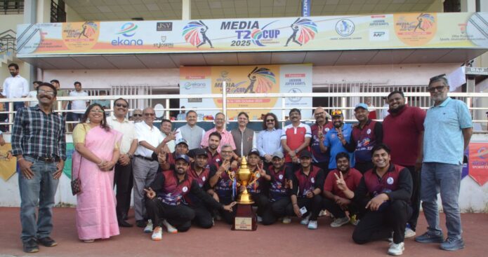 लखनऊ। मैन ऑफ द मैच देवेश पाण्डेय (44) और अब्बास रिजवी (36) की शानदार बल्लेबाजी के दम पर, और इसके बाद धारदार गेंदबाजी की बदौलत टाइम्स ऑफ इंडिया ने इकाना मीडिया टी-20 कप-2025 क्रिकेट टूर्नामेंट के रोमांचक फाइनल में डीडी-एआईआर एकादश को 26 रनों से हराकर खिताब अपने नाम किया।