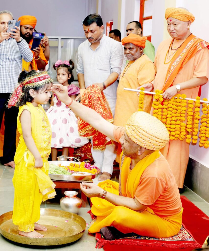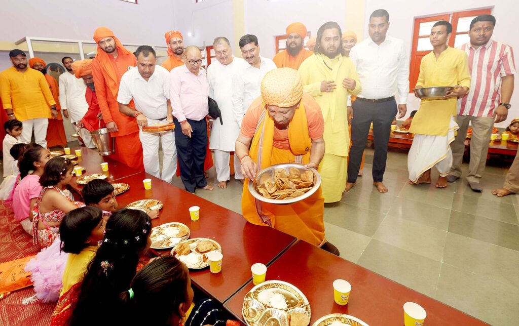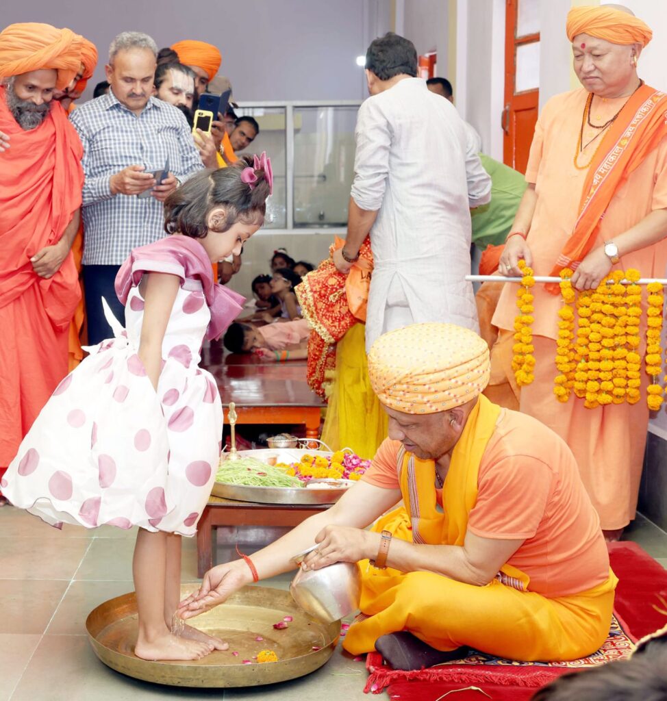 बुधवार को मुख्यमंत्री एवं गोरक्षपीठाधीश्वर योगी आदित्यनाथ ने मंदिर के अन्न क्षेत्र के प्रथम तल स्थित भोजन कक्ष में पीतल के परात में जल से नौ नन्ही बालिकाओं के बारी-बारी पांव धोये। दुर्गा सप्तशती के मंत्रोच्चार के बीच उनके माथे पर रोली, चंदन, दही, अक्षत आदि का तिलक लगाया। पुष्प और दुर्वा से उनका अभिषेक किया। माला पहनाकर, चुनरी ओढ़ाकर, उपहार एवं दक्षिणा प्रदान कर आशीर्वाद लिया।