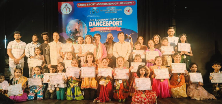 लखनऊ। राजधानी लखनऊ में रविवार को आयोजित तृतीय लखनऊ जिला डांस स्पोर्ट्स चैंपियनशिप ने लोगों को एक यादगार अनुभव दिया। इस दौरान शांभवी यादव, गर्विका गुप्ता, आन्या श्रीवास्तव, सान्वी तिवारी, सान्वी त्रिपाठी, अर्पित पाल ने विभिन्न वर्गो में शानदार प्रदर्शन करते हुए स्वर्णिम सफलता हासिल की।